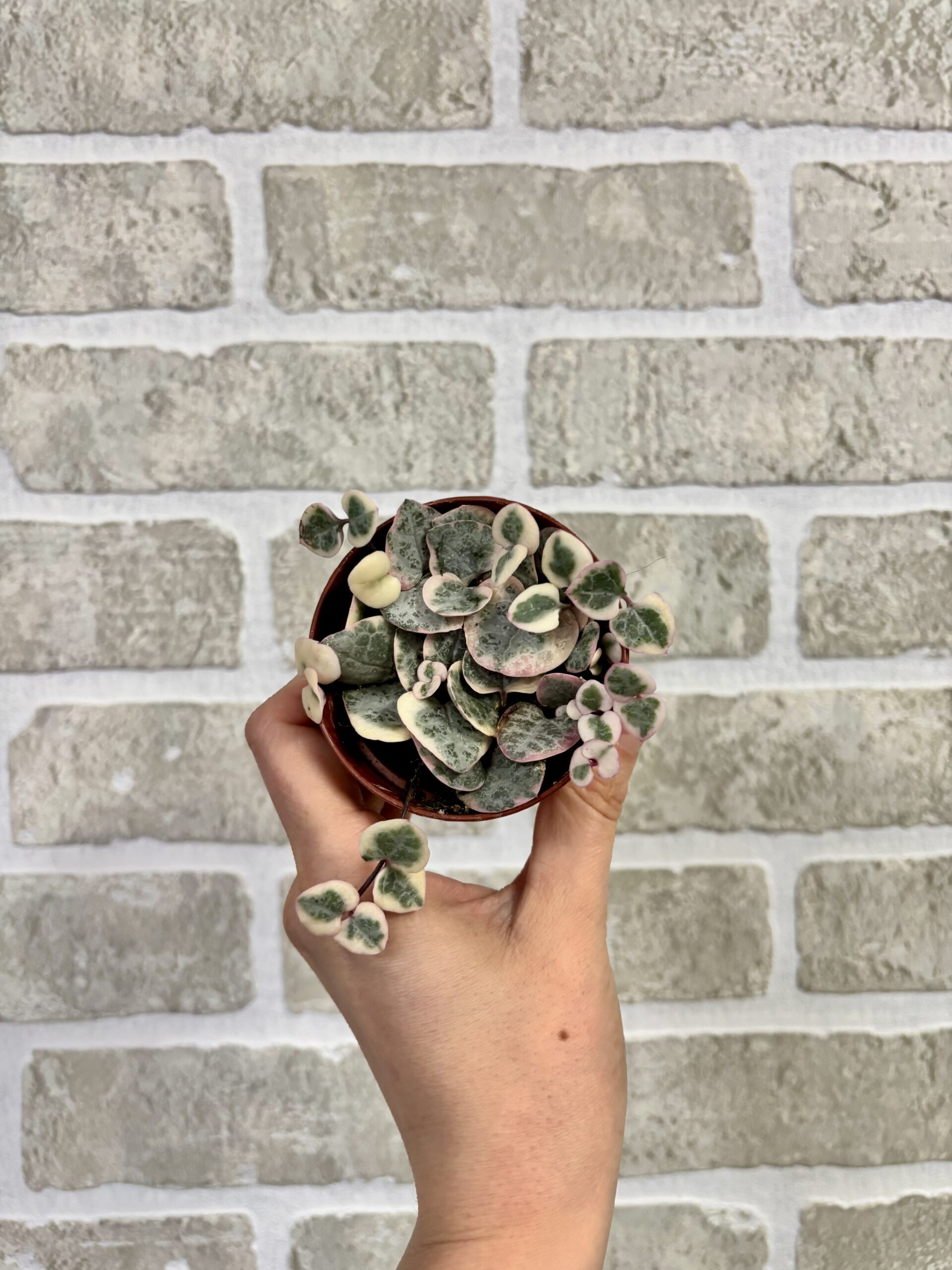 La String of Hearts Variegata est une plante retombante très appréciée pour son feuillage fin et décoratif. Ses longues tiges ornées de petits cœurs nuancés de rose, de crème et de vert apportent douceur et élégance à n’importe quel espace. Facile d’entretien, elle aime la lumière indirecte vive et un arrosage espacé. Parfaite en suspension ou sur une étagère, elle crée un effet cascade naturel et aérien qui attire tous les regards.